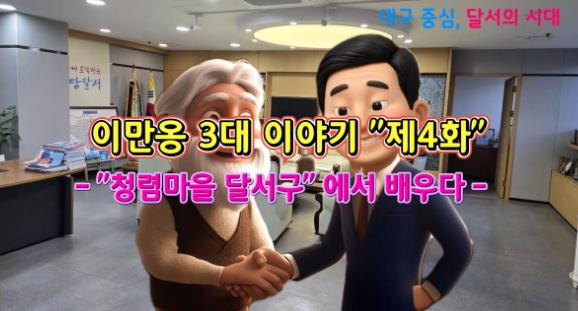 이번 콘텐츠는 달서구의 대표 캐릭터 ‘이만옹 3代 이야기’의 후속편으로, 감사부서와 홍보부서가 협업해 공무원이 직접 기획하고 제작에 참여했다.