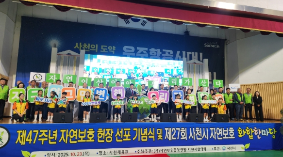 [무한뉴스=최진수 기자] 자연보호사천시협의회는 지난 10월 23일, 사천읍 사천체육관에서 ‘제47주년 자연보호헌장 선포 기념식 및 제27회 사천시 자연보호 화합한마당’ 행사를 성황리에 개최했다.