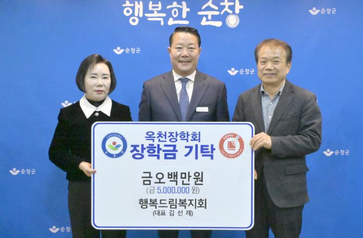 [무한뉴스=정민정 기자] 순창군이 1일 (사)행복드림복지회에서 순창군옥천장학회에 장학금 500만원을 기탁했다고 밝혔다.