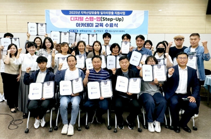 정읍시 일자리지원센터는 지난 19일 센터 다목적실에서 ‘2025 디지털 스텝-업 아카데미’ 수료식을 개최하고, 관내 최초로 디지털 전문 인력 28명을 배출했다고 밝혔다.