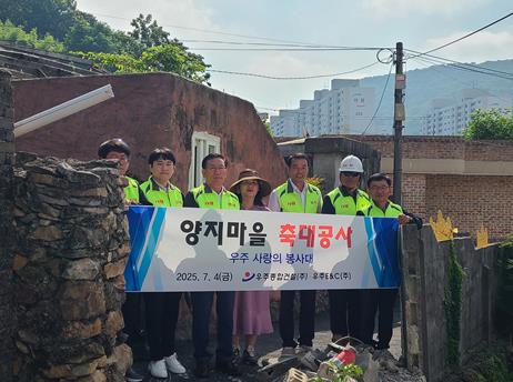 이날 현장에는 김영태 대표를 비롯한 ㈜우주종합건설 임직원들이 직접 참여해 골목길 주변 환경 정비 활동도 진행했다.