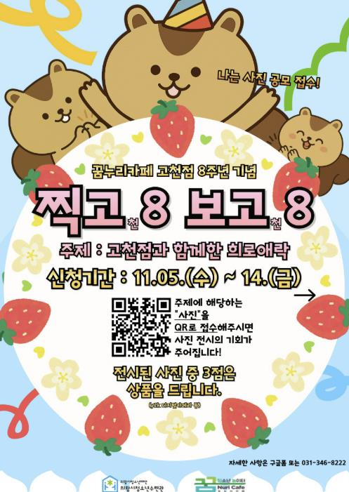 [무한뉴스=손성기 기자] 의왕시청소년재단 산하 꿈누리카페 고천점이 개소 8주년을 맞아 추진 되는 청소년과 지역 주민이 함께하는 기념 프로그램‘찍고8, 보고8’의 참가자를 11월 14일까지 모집한다.