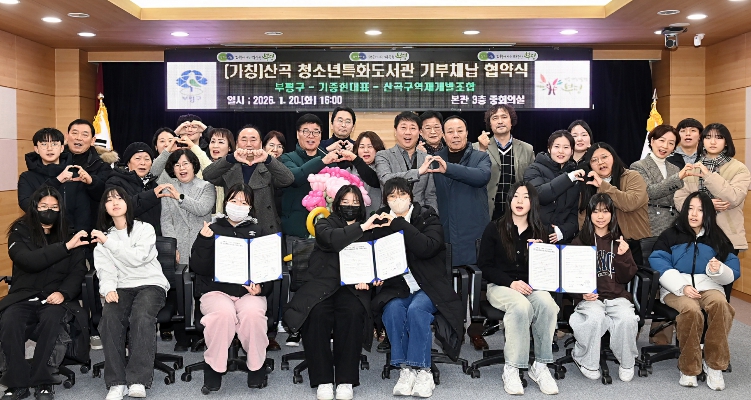 차준택 구청장은 “지역사회를 위해 개인의 소중한 재산을 흔쾌히 내주신 기중현 대표님의 결정에 깊은 존경과 감사를 표한다”며 “산곡-청소년특화 도서관이 기부자의 뜻에 따라 청소년들이 사랑하는 공간으로 만들어질 수 있도록 모든 행정적 지원을 아끼지 않을 것”이라고 말했다.