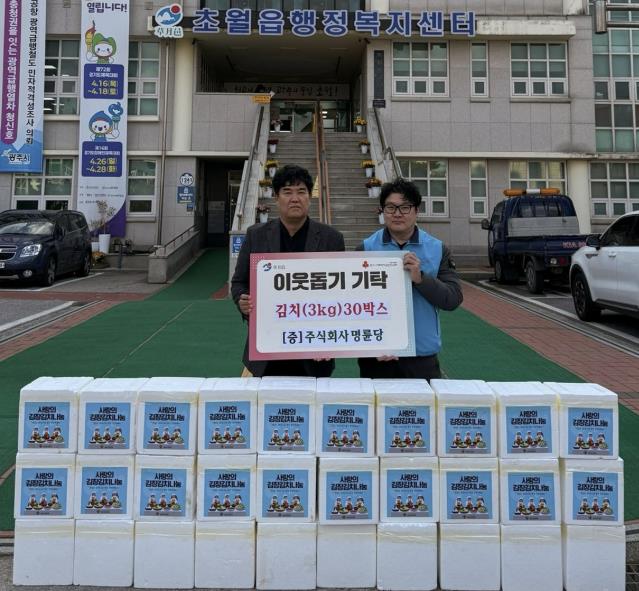 [무한뉴스=정승훈 기자] 광주시 초월읍에 소스 제조 공장을 두고 있는 주식회사 명륜당은 지난 21일 김장 김치 30박스를 경기 사회복지공동모금회를 통해 광주시 초월읍에 기탁했다.