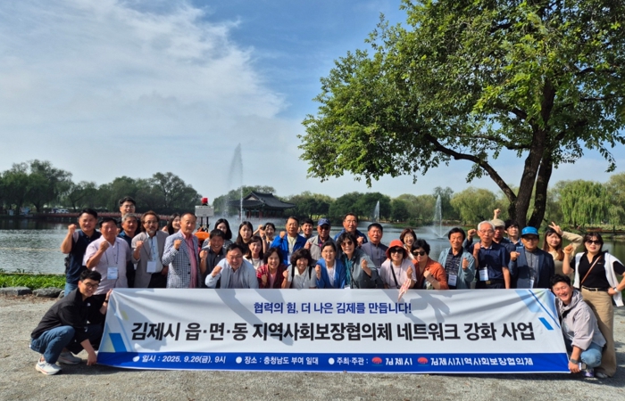 [무한뉴스=정민정 기자] 김제시는 지난 26일 부여 일대에서 19개 읍·면·동 지역사회보장협의체 위원장 네트워크 강화 사업을 열고, 지역사회보장협의체의 핵심 축인 읍·면·동 위원장들의 역량 강화와 상호 협력 체계 강화를 도모했다고 밝혔다.