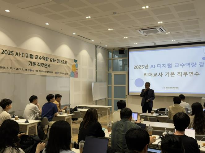 [무한뉴스=정승훈 기자] 경기도연천교육지원청은 2025년 5월 23일부터 24일까지 가평 마이다스 호텔앤리조트에서‘2025학년도 AI‧디지털 교수역량 강화 리더교사 기본 직무연수’를 성공적으로 개최했다. 이번 연수는 디지털 전환 시대의 수업혁신을 선도할 연천 지역 리더 교사를 대상으로 진행됐으며, 관내 에이드 지원단 소속 교사 중 희망자 30명이 참여했다.