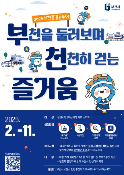 참여를 희망하는 시민은 모바일에서 ‘워크온’ 앱을 내려받고, ‘2025 부천홍길동투어’ 커뮤니티에 가입하면 된다.
