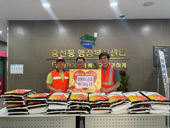 [무한뉴스=정승훈 기자] 의정부시 흥선동행정복지센터는 9월 26일 일창환경(주) 노동조합이 추석을 맞아 백미 25포(10kg 단위)를 기탁했다고 밝혔다.