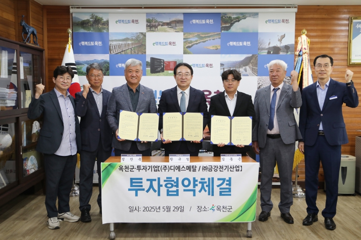 같은 날, 금속 구조물 제조 전문기업 ㈜디에스메탈(대표 박찬용)도 옥천 의료기기 농공단지에 총 50억 원 규모의 공장 증설 투자를 확정하며 향후 본격적인 사업 확대에 나설 예정이다.