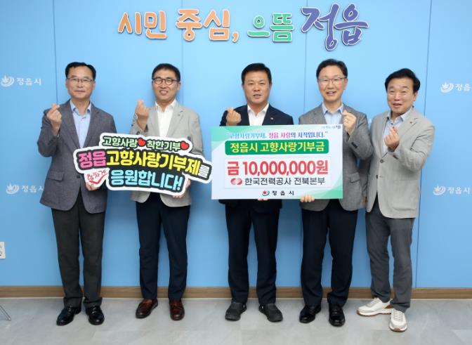 [무한뉴스=정민정 기자] 한국전력공사 전북본부가 정읍시에 고향사랑기부금 1000만원을 전달하며 지역 발전을 위한 따뜻한 응원에 나섰다.