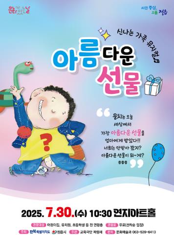 [무한뉴스=정민정 기자] 정읍시가 문화가 있는 날을 맞아 오는 30일 오전 10시 30분, 연지아트홀에서 가족뮤지컬 ‘아름다운 선물’을 무료로 선보인다.