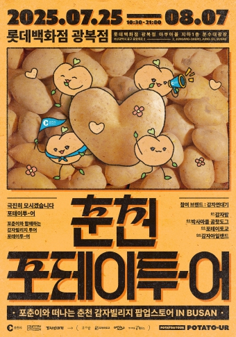 춘천시가 오는 25일부터 내달 7일까지 2주간 부산 롯데 백화점 광복점에서 ‘춘천 관광 홍보 팝업 스토어: 춘천 포테이투-어(Potato-our)’를 개최한다. 이번 팝업스토어는 수도권 중심의 홍보를 광역 단위로 확장하고 소비 주체로 떠오른 Z세대에게 춘천의 젊고 감성적인 이미지를 전달하기 위해 기획됐다.