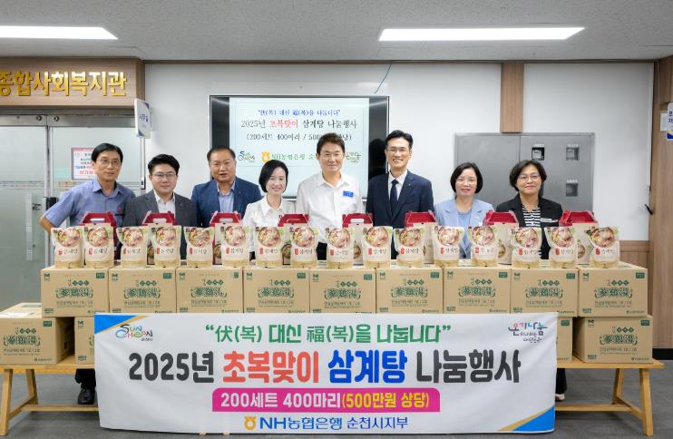 주철호 농협은행 순천시지부장은 “복날을 맞아 더위에 지친 어르신들께 건강한 한 끼를 전하고 싶었다”며 “농협은 앞으로도 지역사회와 함께하는 다양한 사회공헌 활동을 지속해 나가겠다”고 전했다.