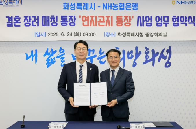 [무한뉴스=정승훈 기자] 화성특례시는 24일 NH농협은행과 결혼 장려 매칭통장 ‘연지곤지 통장’ 사업의 원활한 추진을 위한 업무 협약을 체결했다고 밝혔다.