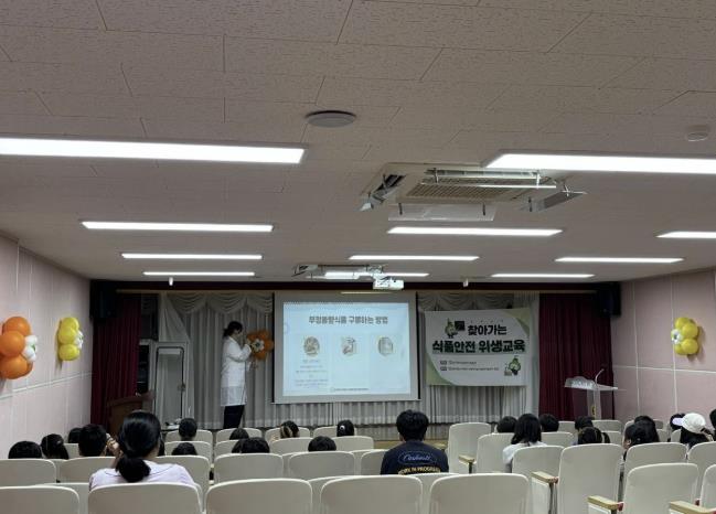 이번 교육은 어린이들의 건강하고 바른 식생활 습관 형성을 위한 식중독 예방, 올바른 손 씻기 방법 등을 동영상을 활용해 안내했다. 또한 학생들에게 부정·불량식품 구분법 등 실생활에 유익한 식품 관련 위생교육을 진행했다.