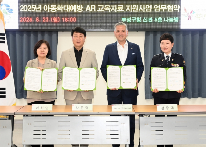 [무한뉴스=정승훈 기자] 부평구는 지난 23일 구청에서 ‘아동학대 예방 증강현실(AR) 교육자료 지원사업’ 추진을 위해 지엠한마음재단코리아, 인천북부아동보호전문기관, 부평경찰서와 4자 업무 협약을 체결했다.