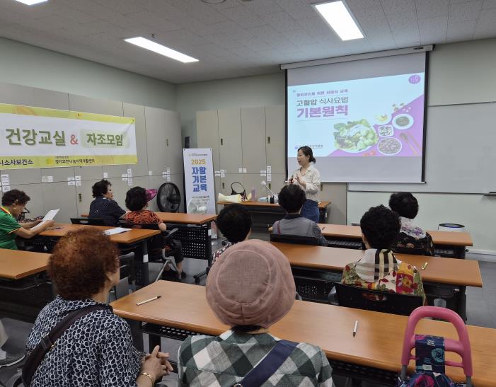 ‘나(Na) 다운(Down) 건강교실’은 고혈압과 당뇨 위험이 높은 어르신들의 건강관리를 지원하기 위해 영양교육, 신체활동 교육, 조리실습으로 구성돼 있다. 특히 조리실습에서는 저염 쌈장, 저염 간장비빔국수, 건강 간식 만들기 등을 진행해 일상에서 활용할 수 있는 실용적인 프로그램으로 마련됐다.
