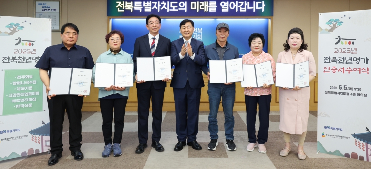 [무한뉴스=정민정 기자] 전북특별자치도는 5일 오랜 시간 한 자리를 지켜온 도내 대표 소상공인 6개사를 ‘2025년 전북천년명가’로 신규 지정하고, 인증서 수여식을 개최했다. 도는 ‘30년을 넘어 100년으로’라는 가치 아래, 전통과 혁신을 겸비한 소상공인을 발굴해 전북 경제의 근간으로 성장시킬 계획이다.