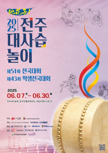 전주시와 (사)전주대사습놀이보존회는 7일부터 오는 30일까지 전주대사습청과 국립무형유산원 등 전주 지역 일원에서 ‘제51회 전주대사습놀이 전국대회 및 제43회 학생전국대회’를 개최한다.