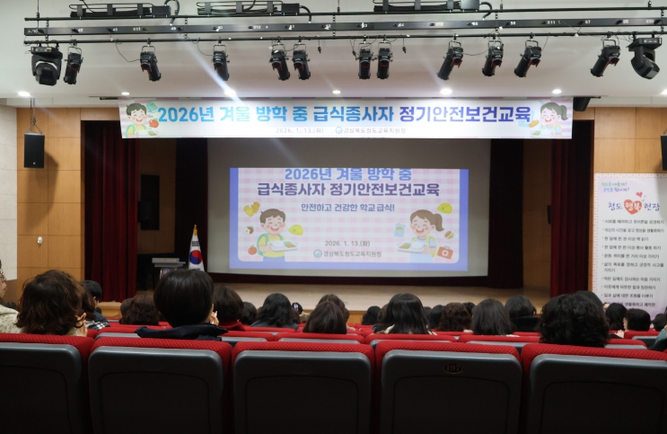 [무한뉴스=최진수 기자] 경상북도청도교육지원청은 1. 13. 청도군 청소년수련관 다목적홀에서 청도·영천 지역 학교 급식종사자 130여 명을 대상으로 방학 중 정기안전보건교육을 실시했다.