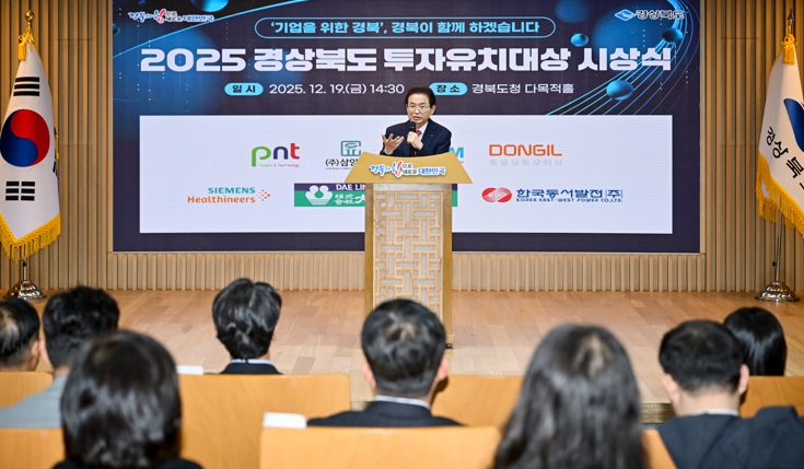 [무한뉴스=최진수 기자] 경상북도는 19일 도청 다목적홀에서 올 한 해 투자유치를 통해 고용 창출 및 지역경제 활성화에 이바지한 기업 및 시군 관계자, 유공 공무원 등이 참석한 가운데 ‘2025년도 경상북도 투자유치대상’시상식을 개최했다.