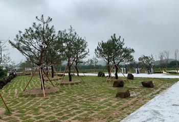 율이리 산림조경숲은 대마리 집단 이주단지 내 가로수 및 경관녹지, 휴게쉼터 조성으로 소나무 등 13종 515주, 회양목 등 5종 9,080주를 식재했다.