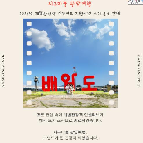 | ▲ 광양시, 2025년 개별관광객 인센티브 지원사업 ‘조기 종료’ |
