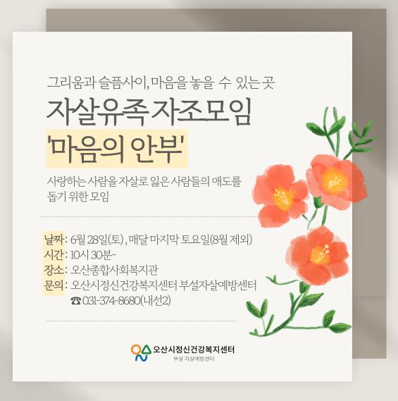 | ▲ 오산시정신건강복지센터, 자살 유족 자조모임 ‘마음의 안부’운영 |