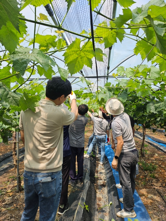 [무한뉴스=정민정 기자] 금산군 맑은물관리과 직원들은 지난 9일 봄철 영농기를 맞아 금성면 화림리 소재 포도농가를 찾아 농촌일손돕기 활동을 펼쳤다.