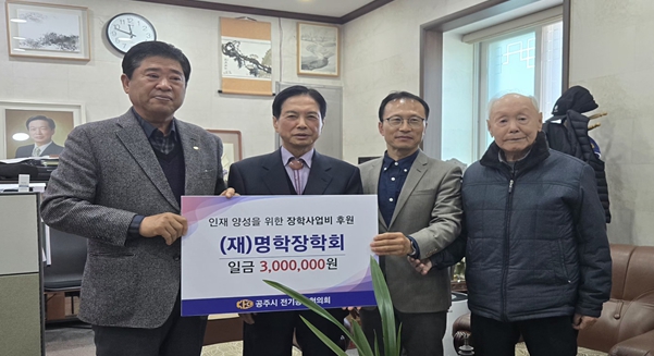 [무한뉴스=정민정 기자] 연말이 되면서 우리 주변에 어려운 이웃을 위한 성금 모금이 한창인 가운데 공주시 전기공사협의회(회장 윤경수)는 지역의 인재 양성을 위한 장학사업비 300만원을 (재)명학장학회에 전달했다.