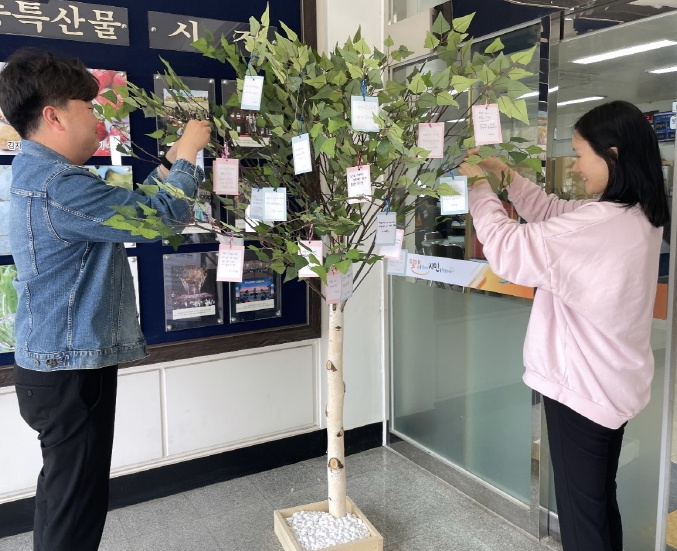 청렴나무는 일회성 구호가 아닌 일상 속 청렴 실천의 출발점으로서 공직자 각자의 다짐을 시각화함으로써 내부 청렴도를 끌어올리고, 민원인을 맞이하는 공간에서 신뢰의 이미지를 함께 전하자는 취지로 마련됐다.