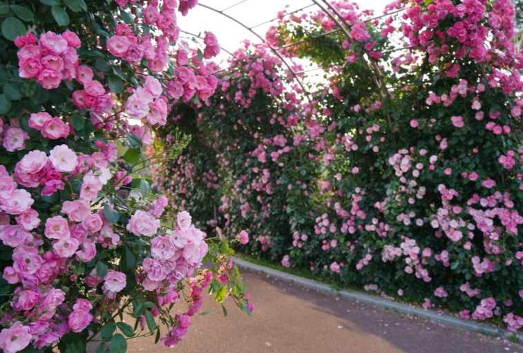 공원 입구에 있는 장미터널을 시작으로 '가브리엘 오크', '더락 어센딩' 등 다양한 품종의 장미가 산책길을 따라 다채롭게 식재돼 방문객들의 눈길을 사로잡는다.