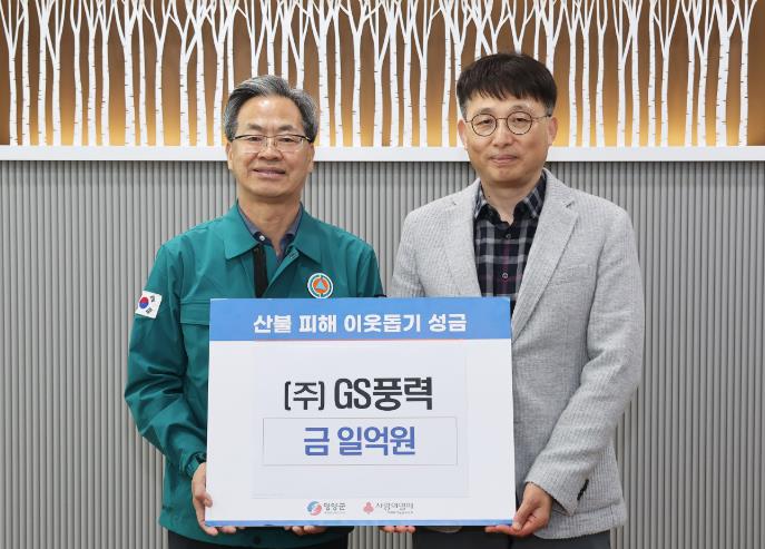 ▲ (주)GS풍력발전, 산불피해복구 성금 1억 원 기탁 |
