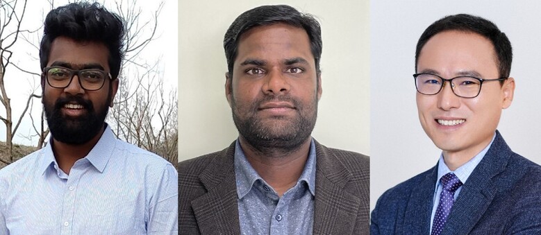 | ▲ 카시비스와나단 무수사미 박사과정, 띠따기리 자야라만 박사, 최명룡 교수(왼쪽부터) |