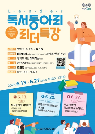 독서동아리 리더 특강과 관련해 궁금한 사항은 광산구 교육도서관과로 문의하면 된다.