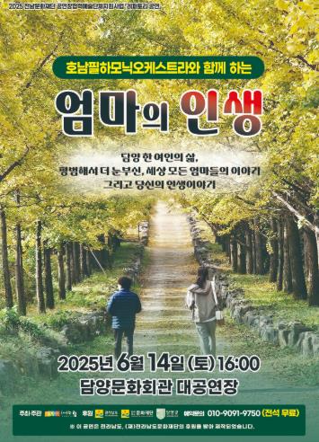 한편, 공연 예매는 온라인 신청 페이지를 통해 가능하며, 자세한 정보는 담양군문화재단 누리집에서 확인할 수 있다.