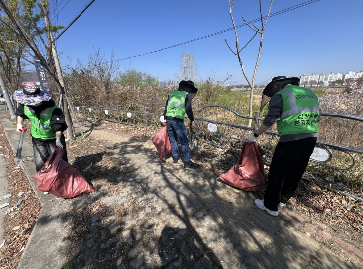 이날 환경정화 활동에 참여한 직원들은 구슬땀을 흘리면서 마암터널 입구에서 전사포농협까지 인도 구간에 버려진 쓰레기들을 집중 수거했다.