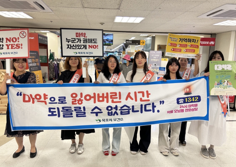 [무한뉴스=정민정 기자] 목포시보건소는 ‘세계 마약퇴치의 날’을 맞아 중독관리통합지원센터와 함께 지난 6월 26일 이마트 목포점, 27일에는 목포역에서 마약류 오남용 예방 캠페인을 펼쳤다고 밝혔다.