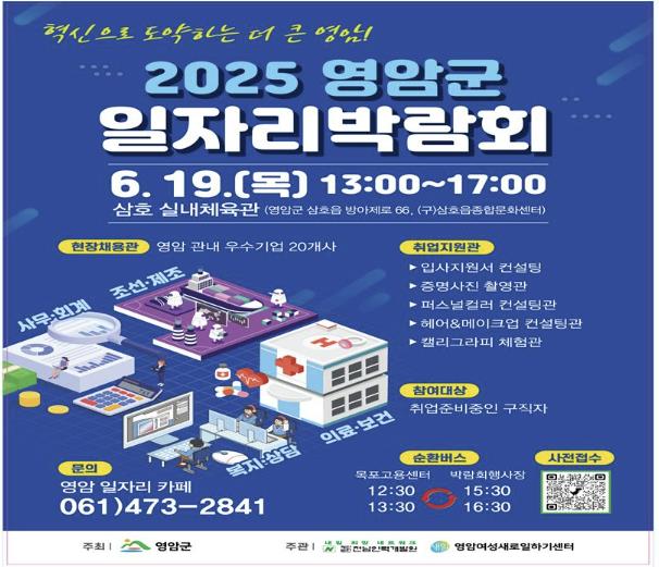 [무한뉴스=정민정 기자] 영암군이 구직자와 기업을 현장에서 연결하는 ‘2025 영암군 일자리 박람회’를 이달 19일 삼호실내체육관에서 개최한다.