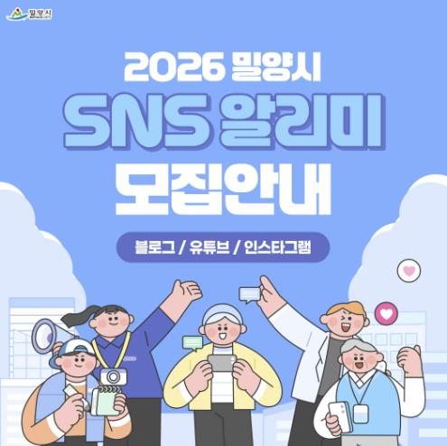 [무한뉴스=최진수 기자] 경남 밀양시는 오는 12일 1일까지 시의 정책, 문화·관광, 축제·행사, 맛집 등 다양한 분야를 취재하고 홍보할 ‘2026년 사회관계망서비스(SNS) 알리미’를 모집한다고 24일 밝혔다.