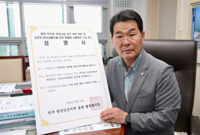 [무한뉴스=정민정 기자] 전국원전인근지역 동맹행정협의회가 11일 정부의 고준위 방사성폐기물 관리 특별법 시행령 제정 추진과 관련해 해당 시행령에서 규정한 원전 주변지역의 범위를 5km에서 30km로 확대해 줄 것을 촉구했다.