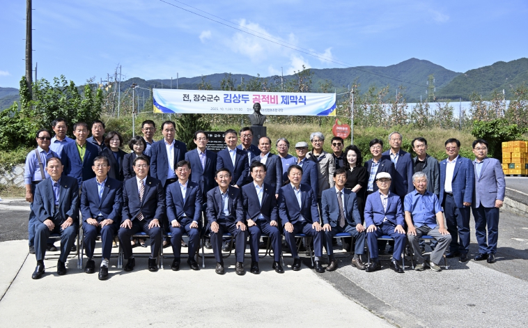[무한뉴스=정민정 기자] 장수군은 지난 1일 장수사과원예협동조합 광장에서 김상두 전 장수군수의 공적비 제막식을 거행했다고 밝혔다.