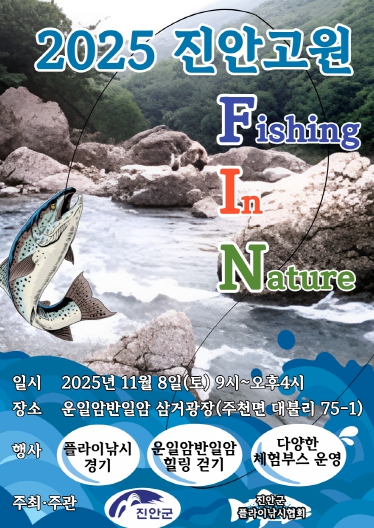 [무한뉴스=정민정 기자] 진안군은 오는 11월 8일, 주천면 운일암반일암 일원에서 ‘진안고원 FIN(Fishing In Nature)’ 행사를 개최한다.