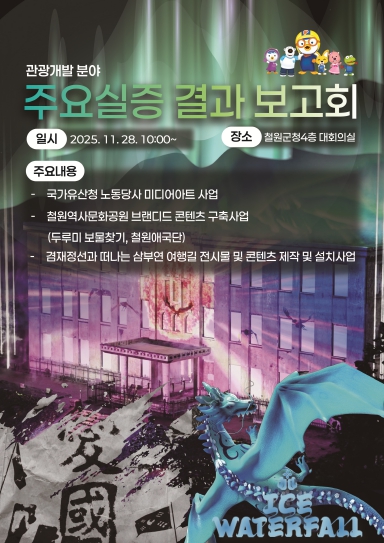 [무한뉴스=정민정 기자] 철원군은 지역 관광 경쟁력 강화를 위해 추진한 다양한 실증 사업의 성과를 공유하는 자리를 마련한다. 2025.11.28일 오전 10시 철원군청 4층 대회의실에서 관광개발 분야 주요실증 결과보고회가 개최된다.