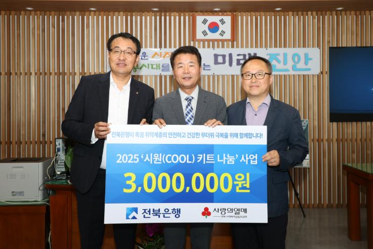 주영환 진안부군수는 “지역사회를 위한 전북은행의 꾸준한 나눔 활동에 감사드린다”며, “도움이 필요한 이웃들에게 소중히 전달하겠다”라고 전했다.