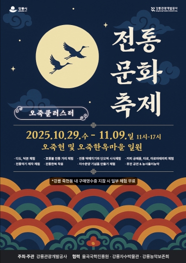 강희문 강릉관광개발공사 사장은 “이번 축제는 오죽헌 일대의 역사·문화자원을 현대적으로 해석해 강릉만의 전통문화 브랜드 가치를 제고하는 계기가 될 것”이라며, “지역 예술기관과 함께 지속 가능한 문화관광 생태계를 만들어가겠다”고 밝혔다.