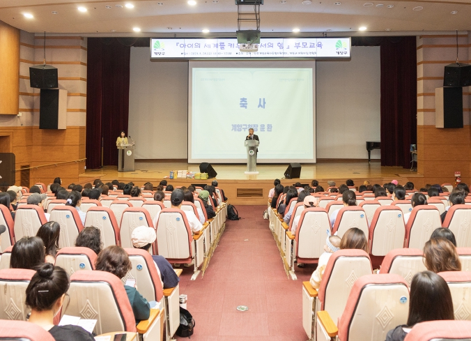 [무한뉴스=정승훈 기자] 인천광역시 계양구는 28일, 구청 대강당에서 ‘아이의 세계를 키우는 독서의 힘’을 주제로 대집단 부모교육을 성황리에 개최했다고 밝혔다.