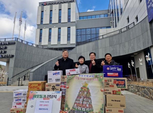 | ▲ 샘물전원교회, 안성시 원곡면에 라면 30박스 기탁 |