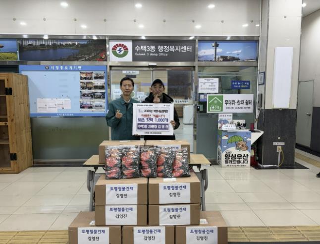 김영진 통장은 수택3동 제29통 통장으로 활동하며 지역 현안 해결과 주민 화합을 위해 성실히 임무를 수행해 왔으며, 평소에도 취약계층에 대한 깊은 관심을 바탕으로 나눔과 봉사를 꾸준히 실천해 오고 있다. 이번 후원 역시 지역 내 어려운 이웃들이 겨울철 한파를 건강하게 이겨낼 수 있도록 돕고자 마련됐다.