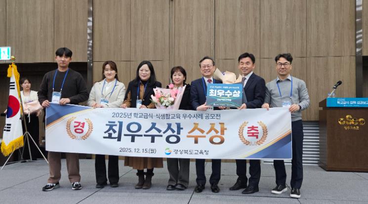[무한뉴스=정승훈 기자] 경북교육청은 15일 청주시에 있는 청주오스크에서 열린 ‘2025년 학교급식 우수사례 공모전’ 시상식에서 최우수상을 받으며, 4년 연속 최우수상 수상의 성과를 달성했다고 밝혔다.